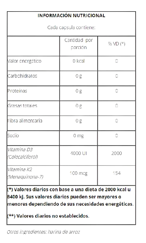 La Vitamina K2 activa dos proteínas clave en el cuerpo: Osteocalcina, que transporta calcio y minerales a los huesos y dientes, beneficia la prevención de osteoporosis. Gla-matrix, los beneficios no óseos están asociados a esta proteína.